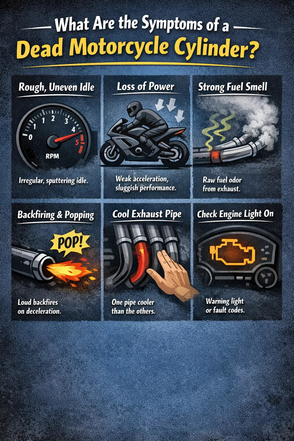 La risposta più diretta: se la tua moto funziona in modo irregolare, ha una potenza notevolmente ridotta, odora di carburante incombusto o fa cilecca al minimo e sotto carico, c'è una forte possibilità che uno dei tuoi cilindri abbia smesso di funzionare. Questo articolo ti guida attraverso tutti i metodi per confermarlo, cosa lo causa e come risolverlo.